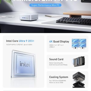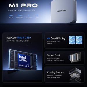 Minisforum M1 Pro-285H Mini PC ، Intel Core Ultra 9 285H (16C/16T ، تا 5.4GHz) ، 64GB DDR5 ، SSD PCIE 4.0 2TB ، USB4 ، RAID ، OCULINK ، WI-FI 7 ، BT 5.4 ، QUAD 4K PRO-285H 64/2TB صفحه نمایش صفحه نمایش