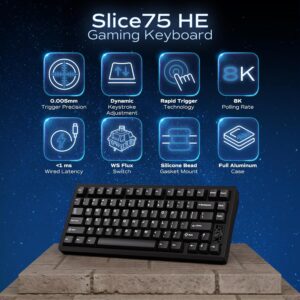 صفحهکلید مکانیکی، صفحهکلید گیمینگ Chilkey Slice75 HE سیمدار، صفحهکلید آلومینیومی مغناطیسی با جلوه هال ۷۵ درصد با سوئیچ کلکی WS Flux HE، ماشه سریع، رایگیری 8K، سفارشی هر کلید RGB، پشتیبانی از PC/Mac مشکی