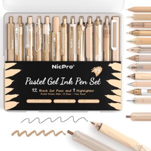 خودکار ژل رولربال 13 تکه Nicpro با قاب، 12 عدد قلم ژل نوک ظریف 0.5 میلیمتری و 1 برجستهکننده، مداد مدرسه، یادداشتهای دانشآموزی، نوشتن، لوازم اداری (قهوهای)