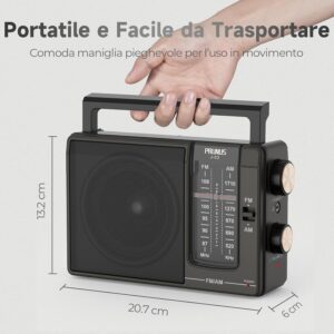 رادیو قابل حمل PRUNUS J-03 AM/FM، رادیو قابل حمل با باتری (4*AA) یا برق متناوب، رادیوهای قابل حمل کوچک با جک هدفون، آشپزخانه، میز، خانه (مشکی) A-Black03