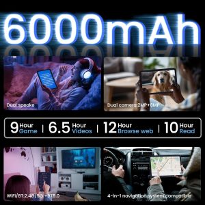 تبلت Keoaxll 10.1 اینچی، اندروید 15، نمایشگر داخل سلولی، رم 20 گیگابایتی (8+12)، رم 256 گیگابایتی، 1280×800، باتری 6000 میلی آمپر ساعتی، بلوتوث، دوربین دوگانه، GMS، وای فای