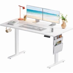میز ایستاده برقی Marsail 55×28 – میز کامپیوتر با ارتفاع قابل تنظیم با تنظیمات از پیش تعیین شده حافظه، مدیریت کیف و کابل ذخیره سازی برای دفتر خانه و ایستگاه های کاری بازی سفید 55×28"