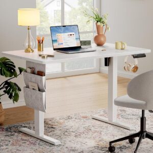 میز ایستاده برقی بزرگ 55 اینچی Veken، نشستن برای ایستادن، قابلیت تنظیم ارتفاع، میز کامپیوتر دفتر کار خانگی برای مطالعه، پد پیاده روی، نوشتن و بازی، میزهای رومیزی چوبی، سفید 55×23.6×46.5 اینچ سفید