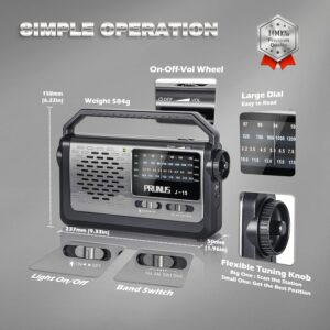 رادیو قابل حمل FM/AM/SW PRUNUS J-15، رادیو قابل حمل با دستگیره بزرگ و بلندگوی بزرگ، رادیو با باتری یا AC، با چراغ قوه و سیم برق، برای سالمندان (نقره ای) نقره ای 15