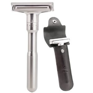 ریش تراش دو لبه ایمن مسافرتی، تیغ ریش تراش ایمنی کلاسیک با دسته بلند River Lake RZ700 (تیغ با قاب محافظ، مشکی)