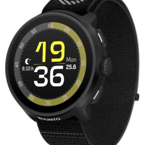 ساعت ورزشی SUUNTO RUN، صفحه نمایش لمسی AMOLED 1.32 اینچی، ردیاب فعالیت، ساعت هوشمند برای دویدن، GPS دو بانده، نظارت بر ضربان قلب/خواب، 12 روز عمر باتری، موسیقی، بند پارچهای تمام مشکی