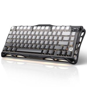 صفحهکلید بازی مکانیکی بیسیم GravaStar Mercury K1 75%، آلیاژ آلومینیوم، سوکت تعویض گرم صفحهکلید سفارشی فشرده، سوئیچهای خطی، نور پسزمینه RGB – گرادیان مشکی