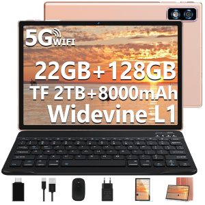 تبلت اندروید 10 اینچی، 5G وای فای هشت هسته ای 2.0 گیگاهرتز، 22 گیگابایت رم + 128 گیگابایت رام (TF 2 ترابایت)، 8000 میلی آمپر ساعت، 8 مگاپیکسل + 5 مگاپیکسل، BT5.0/GMS/Widevine L1/GPS/تبلت با صفحه کلید و ماوس – رزگلد