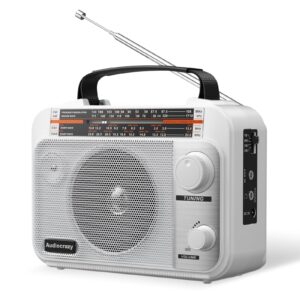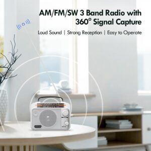 رادیو قابل حمل چند بانده AM/FM/SW1-2 با باتری قابل شارژ 1800 میلی آمپر ساعتی، کابل AC یا رادیو FM قابل حمل با باتری، بلندگو، جک هدفون، ورودی AUX سفید