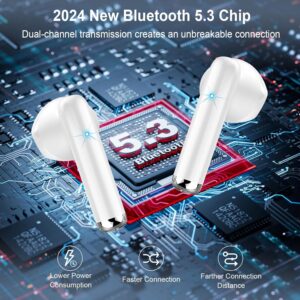هدفون بلوتوث، هدفون بیسیم بلوتوث 5.3، 50 ساعت استریو همهجانبه HiFi، هدفون In Ear با میکروفون حذف نویز HD، کنترل لمسی IP7 هدفون بیسیم برای iPhone Galaxy Android white-II9