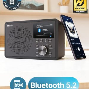 رادیو قابل حمل DAB/FM با باتری قابل شارژ 5000 میلی آمپر ساعتی، رادیو دیجیتال با شارژر USB مشکی با منبع تغذیه خورشیدی دستی