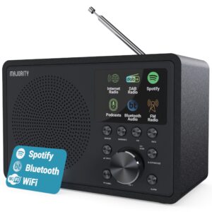 اکثریت رادیو اینترنتی WiFi Touro DAB+ FM Digital | بلوتوث، USB، برنامه Oktiv، Spotify Connect | ساعت زنگ دار دوبل، نمایشگر LCD | رادیو آشپزخانه و خانه با صدای استریو