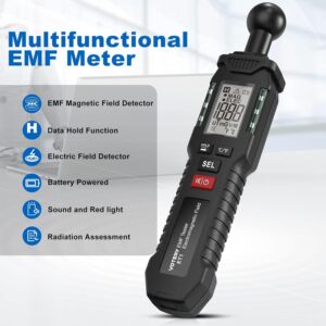 EMF متر، EMF متر دیجیتال قابل حمل، پانل LCD با زنگ و چراغ نشانگر، مناسب برای بازرسی میدان الکترومغناطیسی در خانه، دفتر، فضای باز، اتاق کامپیوتر و غیره.