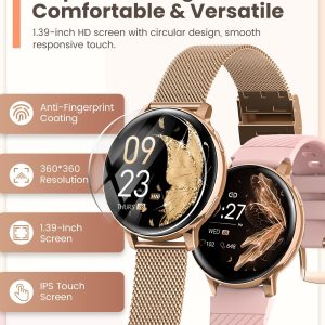 ساعت هوشمند زنانه Sanorum، ساعت هوشمند 1.39 اینچی با تماس، فیزیولوژی زن، مانیتور ضربان قلب 24 ساعته SpO2، خواب، 120+ ورزش، اعلانها، ساعت هوشمند تناسب اندام برای iOS اندروید رزگلد