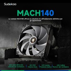 فن PC 140 متری MACH140: فن خنک کننده بی صدا PWM و 500-2200 دور در دقیقه – فن هیت سینک کیس با موتور LCP و FOC و اصلاح تعادل دینامیک، 6 سال ضمانت
