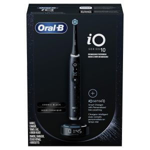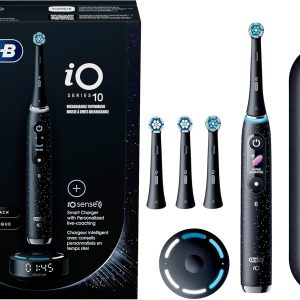 مسواک برقی شارژی Oral-B iO سری 10 با سنسور فشار قابل مشاهده برای محافظت از لثه، تایمر 2 دقیقه، 7 تنظیمات تمیز کردن، 4 سر مسواک تعویضی و کیف مسافرتی شارژ، مشکی مشکی 1 عدد (بسته 1 عددی)