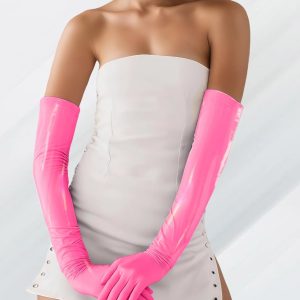 دستکش های بلند زنان Adigau Pu Giny Leather Albow Goves Elastic Costumes Party Party Cosplay Accootions Xl Pink
