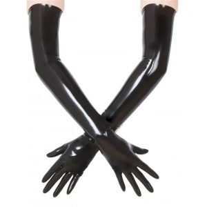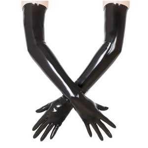 Schwarze Lange Latex Handschuhe für زنان و هررن ، نگاه مرطوب دست و پا دست.