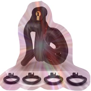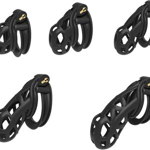 قفس مخصوص مرد سیاه چند منظوره + 4 لوازم جانبی قابل تعویض + 1 جفت کلید + لوله سیلیکونی سیاه – راحت تر هدیه مرد