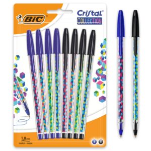 قلم توپی با نقطه متوسط BIC Cristal Collection (1.0mm)، بسته 8 عددی، تکی مشکی/آبی