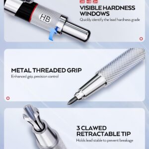 مجموعه مدادهای مکانیکی فلزی Nicpro 6 Pieces، مدادهای هنری 0.5 میلیمتری، 0.7 میلیمتری 0.9 میلیمتری و 2 میلیمتری (2B HB 2H)، مداد مکانیکی با 12 لوله سربی، پاککن، مداد تراش، قاب مداد برای طراحی نقاشی، نوشتن نقاشی.