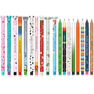ست قلم ژل پاکشدنی – توپ قلم ژل پاکشدنی کریسمس در انتها برای حذف جوهر، حساس به حرارت، قطر نوک 0.7 میلیمتر (18 قلم پاککن کریسمس-B) کریسمس 18 قلم پاکشونده–B