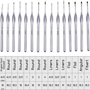 ست قلم مو مینیاتوری MEEDEN 15Pcs، ست قلم موی حرفه ای با نوک ظریف، برس های نقاشی اکریلیک، آبرنگ، رنگ روغن، مدل های صورت و ناخن