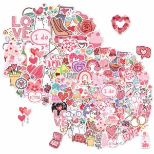 200 استیکر عاشقانه قلب صورتی زیبا مد استیکر ضد آب برای کودکان آلبوم تزیین لپ تاپ – هدایای تزئینی