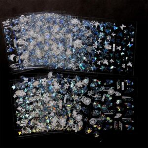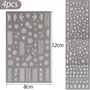4 ورقه استیکرهای هنری ناخن کریسمس دانه های برف، براق سفید، استیکرهای کریسمس، برچسب های تزئین کریسمس