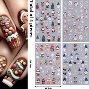 4 عدد برچسب ناخن کریسمس درخت بابا نوئل استیکرهای هنری ناخن کریسمس با دانه های برفی نقش برجسته شیرینی زنجفیلی مرد برچسب ناخن کریسمس شیرین