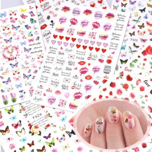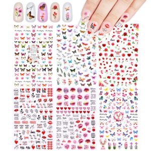 540+(6 ورق) برگردان بر روی ناخن پروانه ای گل، برگردان بر روی ناخن VETPW 3 بعدی خود چسب استیکر هنر ناخن با رز پروانه ای عشق قلب لب بوسه مدل برای برگردان های ناخن DIY