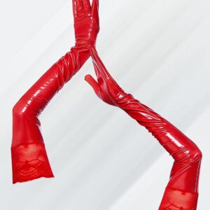 دستکش های براق زنانه FEOYA دستکش های بلند و مرطوب دستکش توری چرمی الاستیک برای کلوپ شبانه Carnival Red M