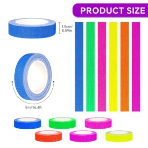 6 رول نوار نئون UV فلورسنت بلک لایت گافر، نوارهای واکنشی بلک لایت، نوار درخشش در تاریکی، برای تزئینات مهمانی، صنایع دستی (15 میلی متر * 30 متر)