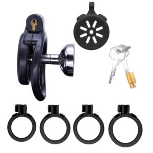 قفس محافظ مردانه تخت مشکی، قفس ضد خاموش پلاستیکی تخت ABS با 4 حلقه سایز و لوازم جانبی برای هدایای مردانه-K+3.5 (لوله نقرهای 2 قسمتی)