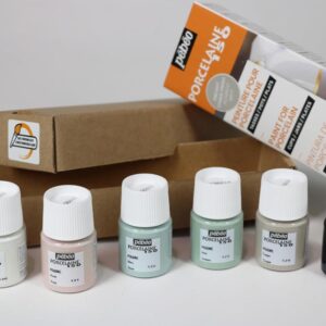 Pébéo – Porcelaine Beginners Set 150 Chalk – نقاشی روی چینی – 6 بطری 20 میلی لیتری – پودر سفید + صورتی پودر + آبی پودری + سبز پودری + پودر مات + تخته سنگ سیاه