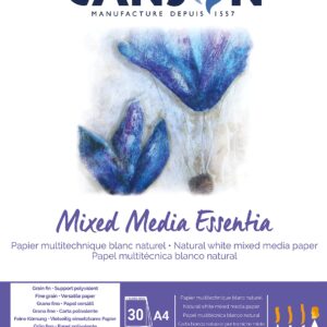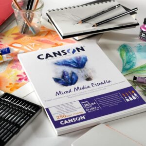 Canson Mix Media Essentia، پد کاغذی با اندازه کوتاه برای تکنیک های مرطوب، A4، 30 برگ، 250 گرم، دانه ریز