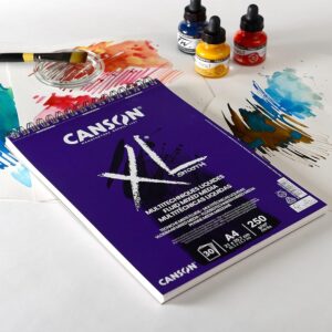 Canson XL Fluid Mix Media آلبوم مارپیچ برای رنگهای سیال ضلع کوتاه 250 گرم در متر دانه صاف A4 30 برگ، سفید فوق العاده