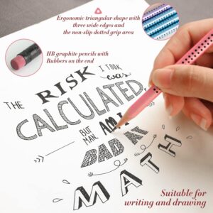 مداد HB 30 مداد HB با پاک کن و تراش، سنجاق مثلثی از پیش تیز شده برای نوشتن و نقاشی در مدرسه و خانه (آبی) چند رنگ