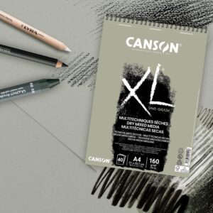 Canson XL Sand Grain، کاغذ طرح طرح ساخته شده با مواد آلی تجدیدپذیر، A4، 40 برگ، 160 گرم در متر خاکستری اثر سندبلاست خاکستری A4-Grey