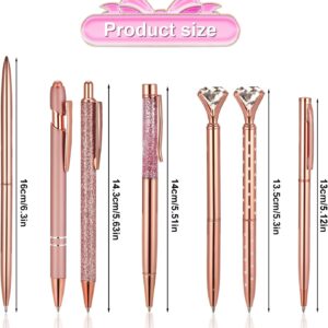 خودکار 7 تکه رزگلد، خودکار کریستالی جوهر فلزی سیاه و سفید قلم ریز الماس قلم رز طلایی براق برای لوازم اداری مدرسه خانه عروسی