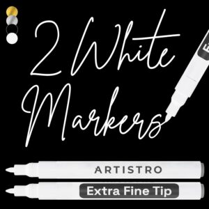 قلم رنگ اکریلیک سفید Artistro 2 برای نقاشی سنگ سرامیک چوب تایر شیشه ای پلاستیکی – نشانگر رنگ بسیار ظریف 0.7 میلی متری ایده آل برای برچسب زدن پروژه های هنری صنایع دستی DIY 2 سفید فوق العاده ظریف