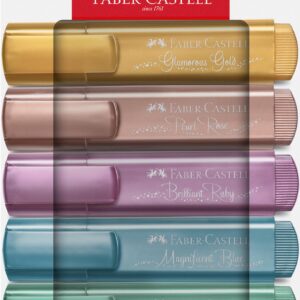 مجموعه 6 برجسته فلزی Faber-Castell 254676، نوک اسکنه دقیق، ست هایلایتر رنگی، طراحی ارگونومیک تخت