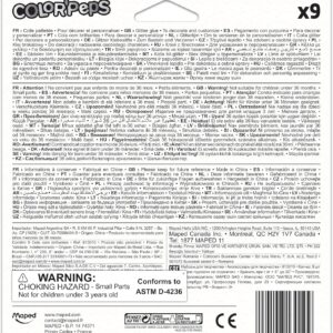 لوله های چسب گلیتر Maped Color'Peps برای کودکان، جلوه براق، استفاده آسان، نوک ظریف، 9 لوله 10.5 میلی لیتری، رنگ های متنوع تکی