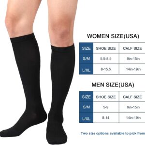 جوراب های فشرده، (2/4/6/7 جفت) برای مردان و زنان 15-20 میلی متر جیوه برای ورزش های دو و میدانی، دویدن، مسافرت هوایی، پشتیبانی از L-XL مشکی بهترین هستند.