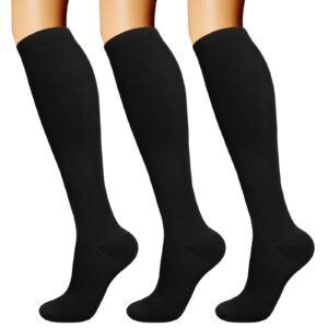 جوراب فشرده سازی فارغ التحصیل DRESHOW برای مردان و زنان جوراب ورزشی الاستیک برای دو و میدانی، دویدن، مسافرت، پرواز، دوچرخه سواری بسته 3: مشکی SM