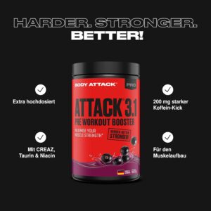 Body Attack Pre Workout Booster – تقویت کننده تمرین با دوز بسیار بالا برای ورزشکاران و ورزشکاران – ایجاد شده به ویژه برای کسانی که بدنسازی، دو و میدانی سنگین و تناسب اندام (Orange Maracuja) انجام می دهند.