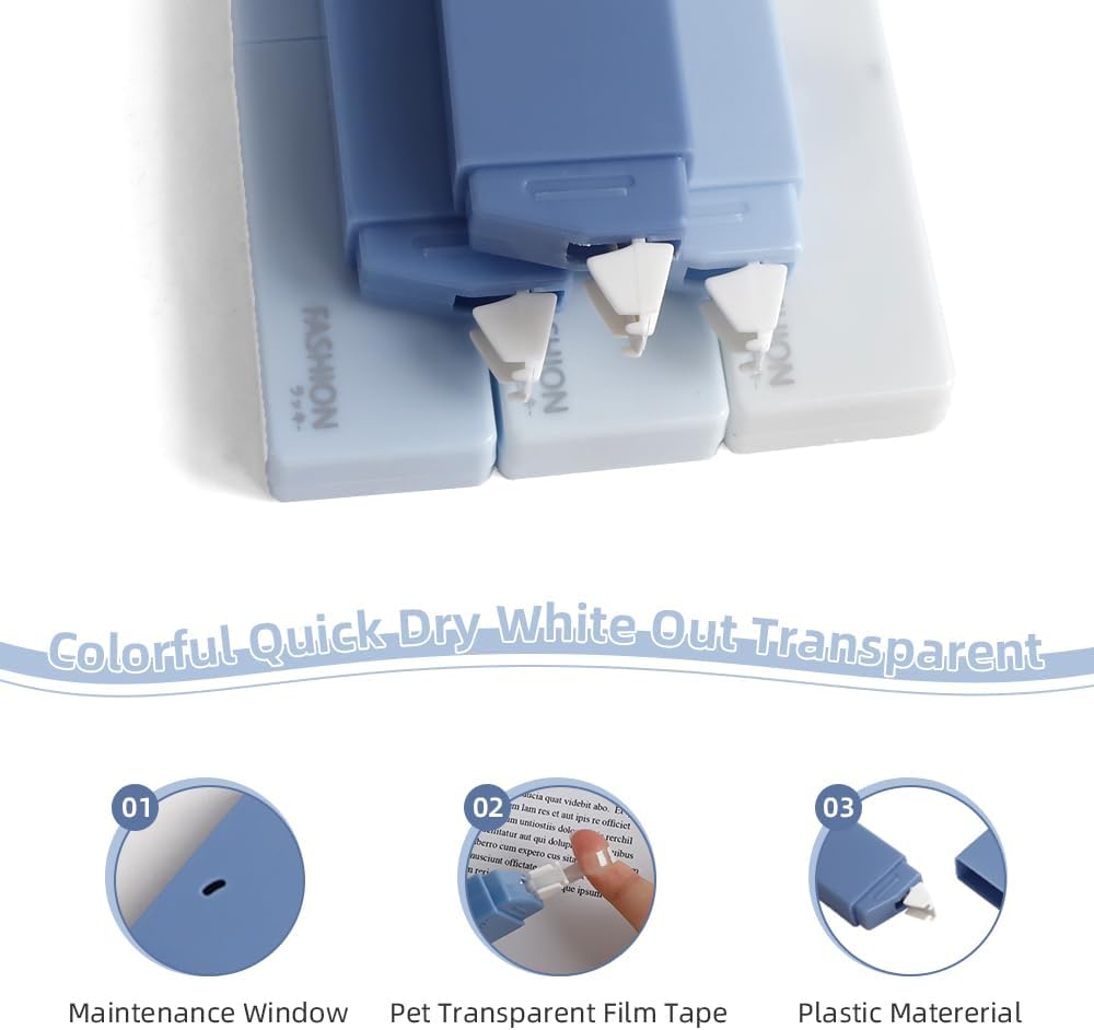 - 【Tear Resistant Tape】Our correction tape comes with built-in thick film, excellent material, tear-resistant, even application, even distribution, suitable for most white papers. Correction tape writes smoothly, cuts cleanly, curls well and hardly breaks while curling. It is easier to handle than concealer liquid. It is important to ensure that the white tape is evenly stressed during use, otherwise it will stick.