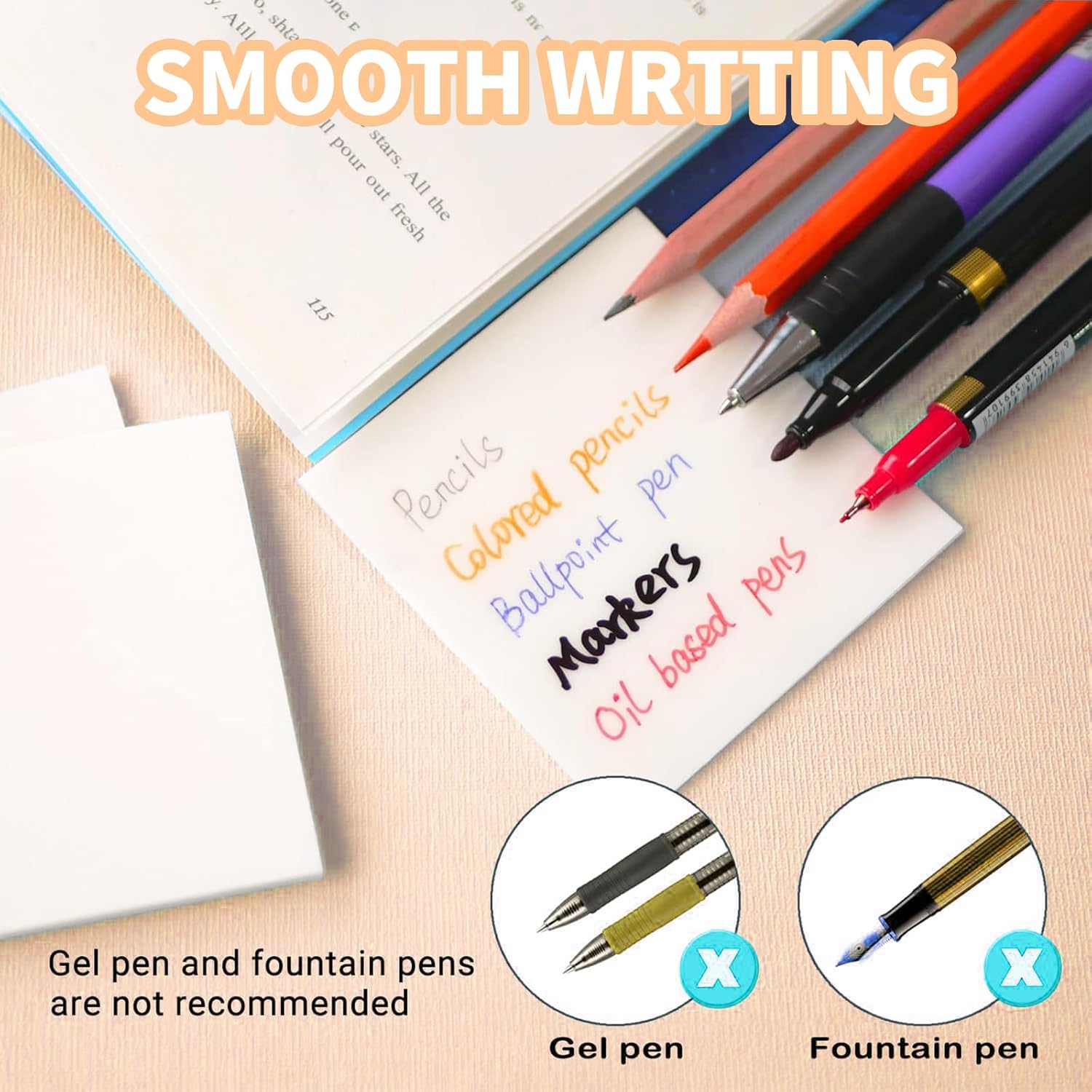 - 【High-quality materials】transparent sticky notes are made of high-quality PET material, waterproof, smooth writing, high transparency, disassembly of the sticker, sticky notes are easy to paste or tear, leave no traces and do not damage the book, can be used repeatedly.