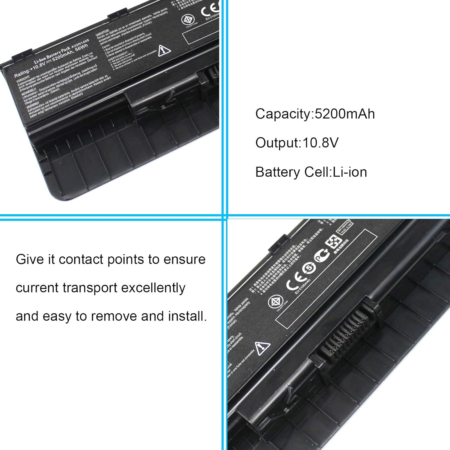 | Compatible Phone Models | برای ASUS N551 N751 G551 G56JR G58 G741JW G771 GL551 Series ؛ ASUS ROG G551 G771 SERIES A32N1405 A32NI405 باتری لپ تاپ بیشتر ببینید |