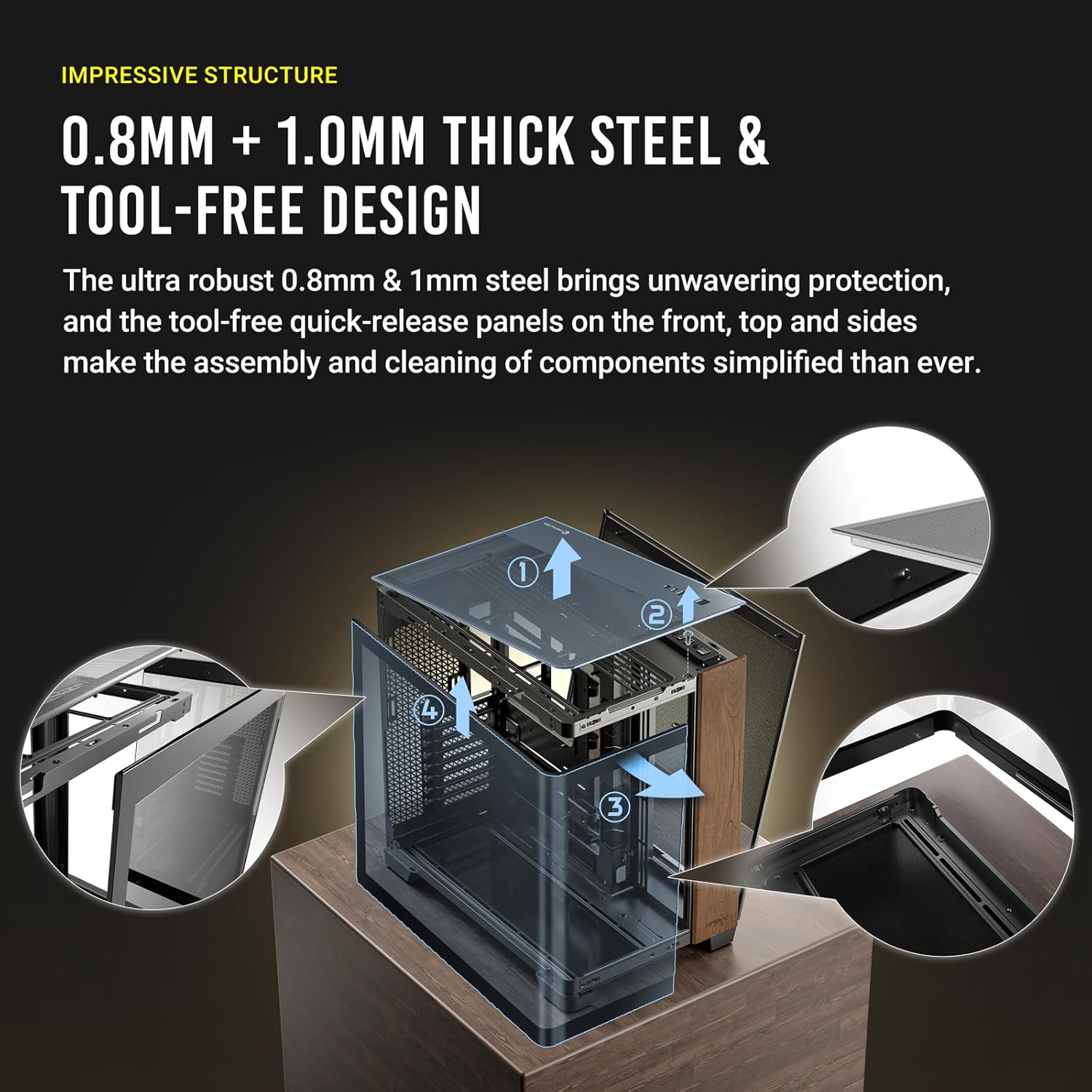 معرفی C8 Curve Wood Wood Full-View PC ، که ترکیبی از طراحی برش با کیفیت استثنایی است. شیشه های تک رنگ 4 میلی متر خمیده استیل ، منظره ای غیرقابل استفاده از سخت افزار شما را ارائه می دهد. در سمت راست جلو ، صفحه چوب واقعی را تصویب می کند ، که یکپارچه در اتاق نشیمن شما قرار دارد. ساخته شده از فولاد با استحکام بالا 0.8+1.0 میلی متر ، یکپارچگی استیکوتوری را با گذشت زمان تضمین می کند. C8 Curve Wood انتخاب نهایی برای ساخت رایانه رویایی شما است.